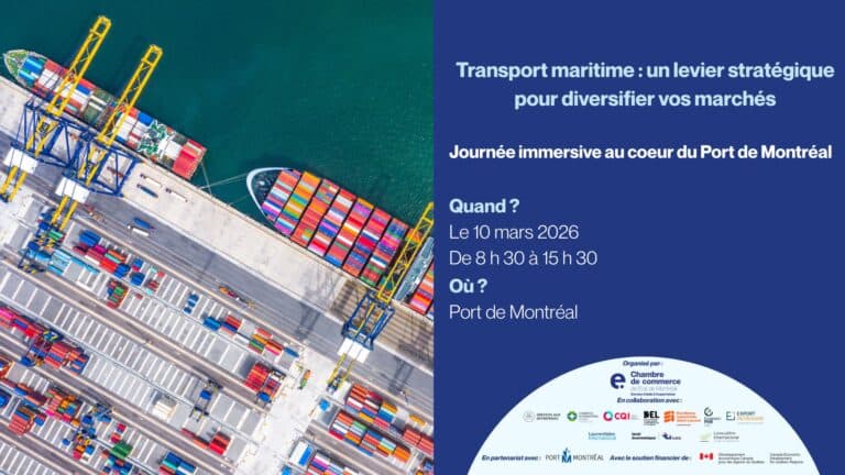 Comprendre le fonctionnement du transport maritime, ses coûts, ses délais, ses routes, ses acteurs dont le Port qui joue un rôle central dans la chaîne logistique, est indispensable pour optimiser ses exportations. Cette formation immersive d’une journée vous offre l’occasion de démystifier, directement sur le terrain, un acteur clé de la logistique mondiale. Vous y découvrirez comment tirer parti de ce maillon stratégique pour améliorer votre compétitivité et soutenir votre expansion internationale.